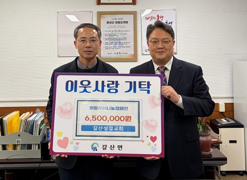 홍성군은 갈산성결교회(담임목사 정주용)가 지난 15일, 저소득 희귀난치성질환 가구를 지원하기 위해 성금 650만 원을 기탁했다고 밝혔다.