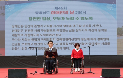 제46회 장애인의 날을 기념해 지난 4월 17일 홍주종합운동장에서 ‘제46회 충청남도 장애인의 날 기념행사’가 성황리에 개최됐다